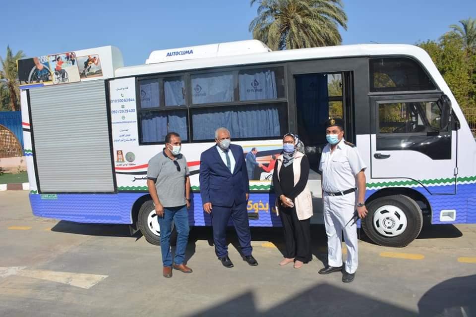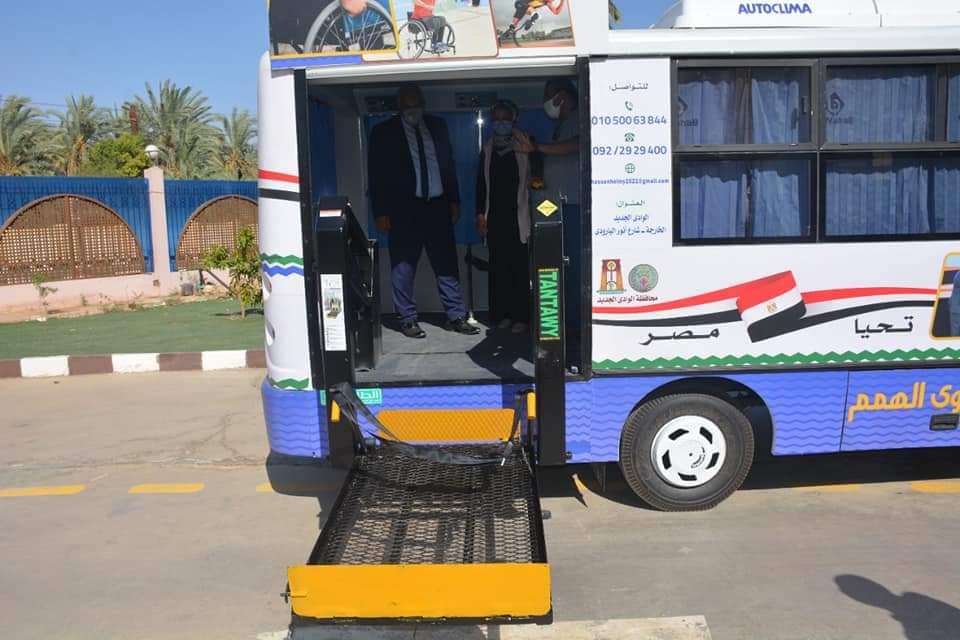 دشن اللواء محمد الزملوط محافظ الوادي الجديد ترافقه الأستاذة حنان مجدي نائب المحافظ ، اليوم، أحدث حافلة مزودة بمصعد هيدروليكي لخدمة ذوي الاحتياجات الخاصة وذلك في إطار حرص المحافظة على دعم و تأهيل ذوي الاحتياجات الخاصة ودمجهم في المجتمع.