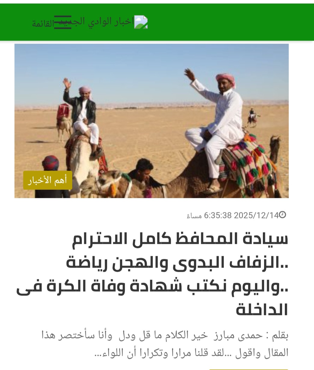 وبدأت علاقتى بمحافظى الوادى الجديد من خلال عملى بجريدة الشعب مع الراحل العظيم ابراهيم شكرى وانا طالب بالفرقة الثالثة عام 1989 ، حيث ألتقيت مع الدكتور فاروق التلاوى بمكتبه للرد على بعض المشاكل والقضايا التى تؤرق المواطنين ومنها مشاكل قرى الخريجين فى غرب الموهوب ونشرت موضوعا على نصف صفحة بعنوان ” الحمار وسيلة المواصلات الوحيدة فى قرى الحريجن ” وتم نشر صورة للمحافظ التلاوى على شمال العنوان مباشرة ، ووقتها زعل المحافظ زعلا شديدا لأن احد المغرضين أوحى له أن وضع صورته هكذا بجوار العنوان يقصد بها الاساءة له وأنه هو المقصود.
