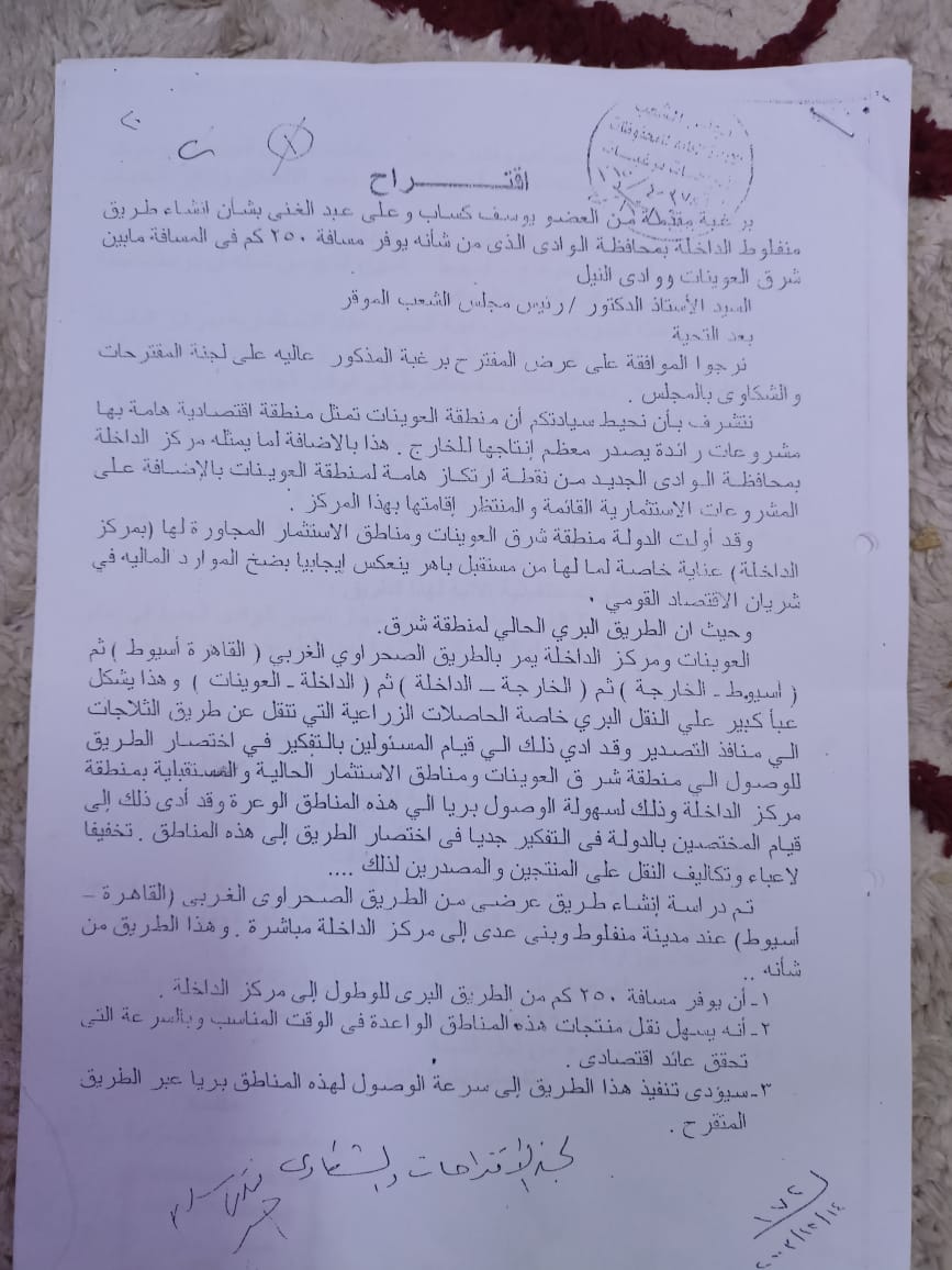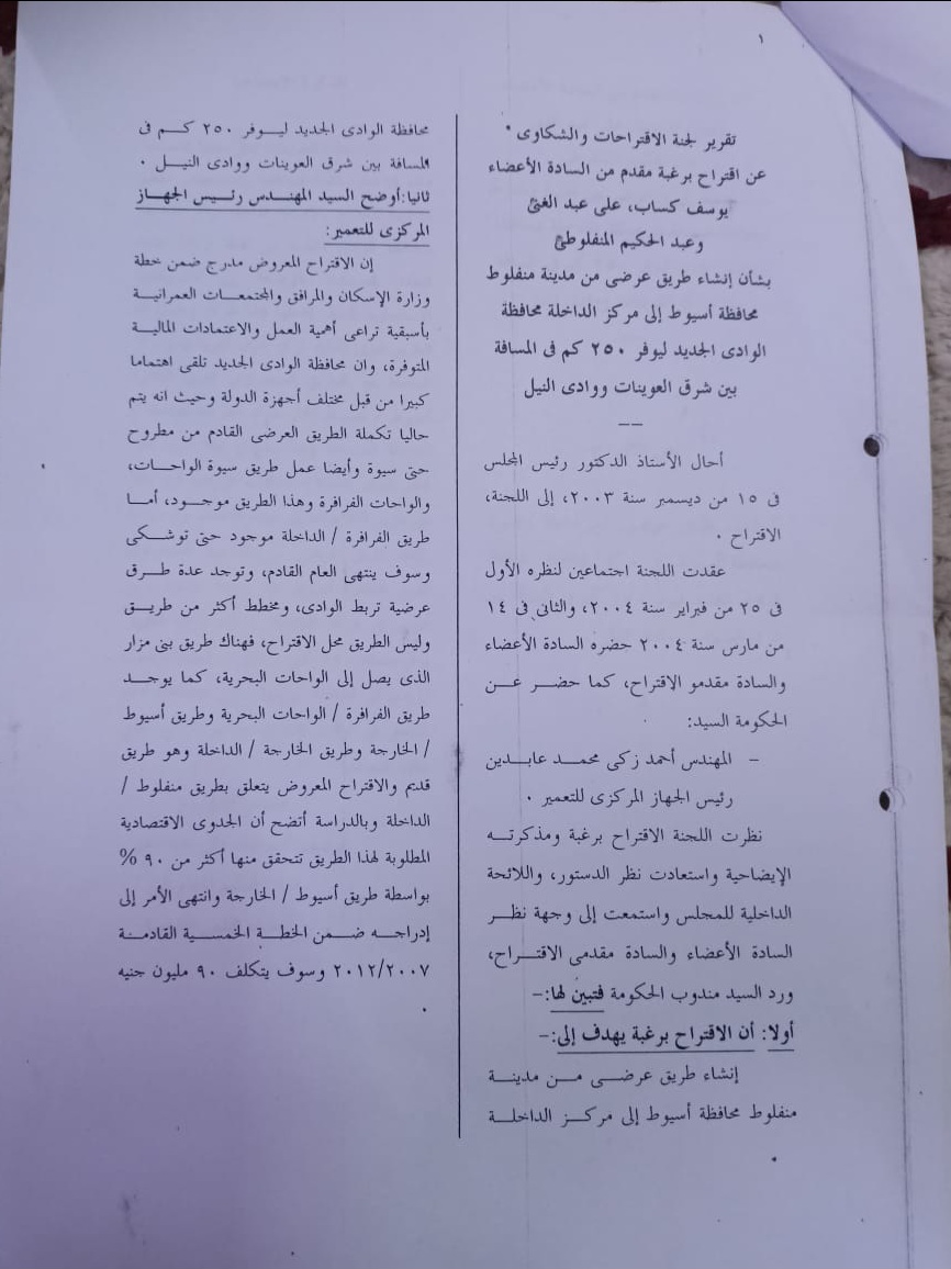 وللتوضيح النواب مارسوا دورهم فى الضغط ولا يمكن للطريق أن يتم لولا دور الجهاز التنفيذى واصراره ممثلا فى اللواء دكتور محمد سالمان الزملوط محافظ الوادى الجدبد وبقية اجهزة الدولة