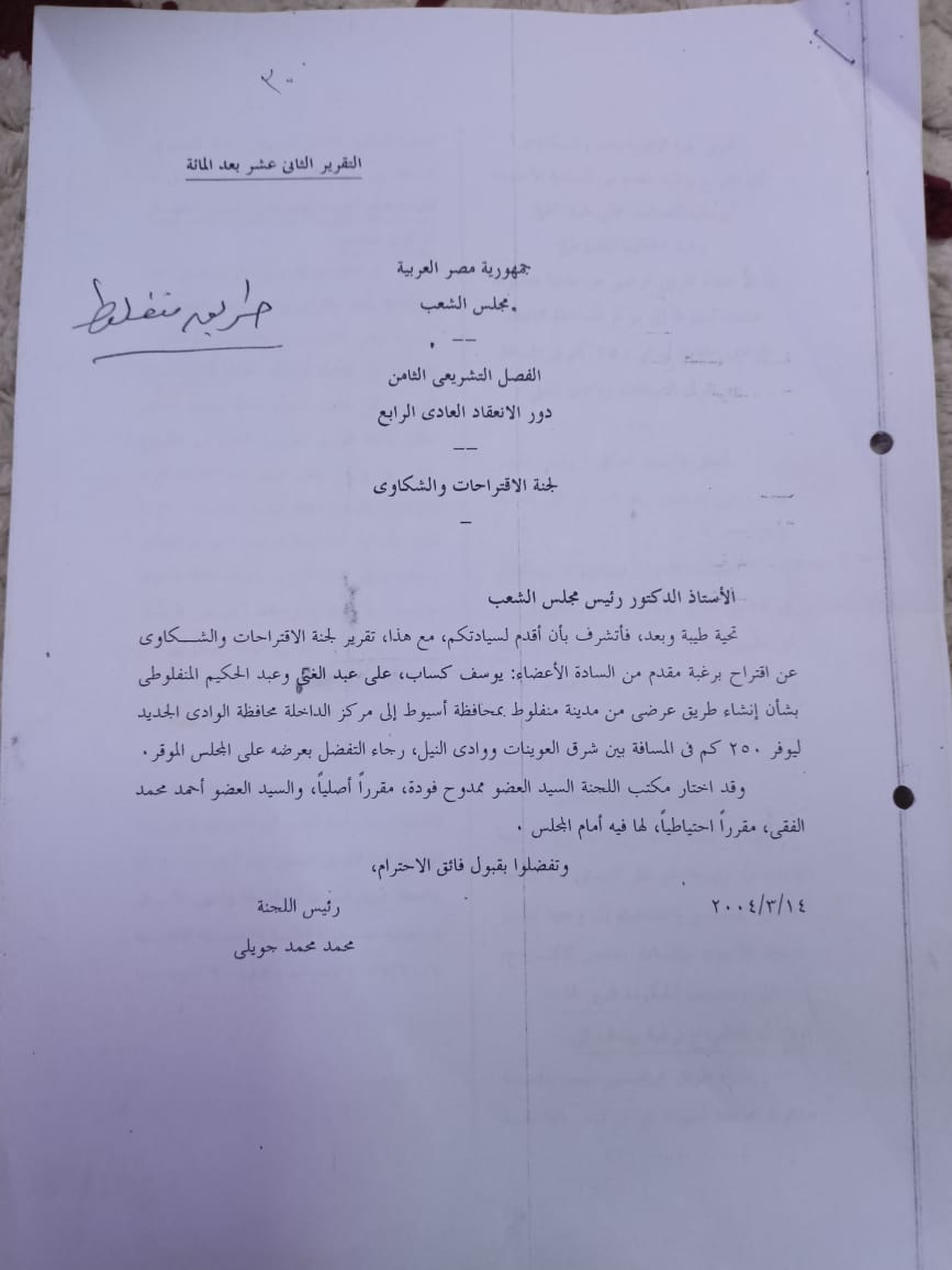فى خريف عام ١٩٩٠ بينما كنت مترجلا من منزلنا فى المنطقة البحرية الغربية بقرية الهنداو ( الوصف خاص لأهل القرية وأبناء الداخلة الذين يعرفون معالم القرية ) قبيل الظهيرة وعند مدرسة الهنداو الابتدائية القديمة قابلت رجلا يبدو وكأنه فى منتصف عقد الخمسينات من عمره يترجل على قدميه ويمسك بشمسية ( مظلة) فى يده للحماية من الشمس وبمفرده بدون ما يسمى بالحملة والزفة والمتاديب والمواكب ..مرتديا بدلة سفارى ..وأنا لا اعرفه ..وكان يسير فى اتجاه الغرب بينما كنت اسير فى اتجاه الشرق …فاقترب منى وصافحنى وكان العرق يتصبب من وجهه ورحبت به كونه غريبا ليس من القرية …فعرفنى بنفسه قائلا …أنا بوسف كساب من القصر وعايش فى موط مرشح لعضوية مجلس الشعب وجاى بدعى لنفسى ونتمنى توقفوا معانا انا موظف بسيط فى الصحة..وعايزين حد من الناس البسيطة يمثلنا فى المجلس ..فقلت له ان شاء الله يا حاج ربنا يوفقك …ولم اكن وقتها مهتما بهذا الشأن ولم يوفق الرجل فى انتخابات ١٩٩٠ ثم خاض انتخابات ١٩٩٥ ولم  يوفق… ولم ييأس حتى كتب له النجاح مستقلا امام مرشح الحزب الوطنى فى انتخابات ٢٠٠٠ ووقتها وفى نفس العام انتقلت للعمل كمحرر برلمانى داخل مجلس الشعب مصادفة …لتشاء الظروف أن التقى واقترب من هذا الرجل المكافح المثابر البسيط رحمه الله ولى معه حكايات ومواقف واحداث كنت فيها شاهدا على العصر داخل اروقة البرلمان وخارجه وشهد معى مولد أول جريدة تحمل اسم المحافظة عام ٢٠٠٤…وشهادة للتاريخ كان هذا الرجل ومعه زميله المهندس على عبد الغنى أول من تقدموا باقتراح برغبة لانشاء طريق تنيدة منفلوط فى لجنة الاقتراحات والشكاوى ( مرفق المستندات) ..ثم اكمل بعدهم النائبان الدكتور محمد خليل والاستاذ محمد محمدين فى دورة ٢٠٠٥- ٢٠١٠ حيث تم اعتماد اول ١٠ ملايبن جنيه من جهاز التعمير فى وزارة الاسكان للطريق فى عهد الدكتور محمد والاستاذ محمدين واكمل الضغط والمشوار النائبان برديس سيف الدين وتامر عبد القادر فى برلمان ٢٠١٥ ثم واصل النائب  تامر الذى اعيد انتخابه جهدا خاصا فى المرحلة الأخيرة  ومعه زميله حمدى محمد حسن فى برلمان ٢٠٢٠ وكل ادلى بدلوه وخاض معارك فى هذا الملف وأن تفاوتت الجهود من نائب لآخر كل حسب قدراته وعلاقاته   …ونحن كاعلام كان لنا دورا فى فتح الملف اكثر من مرة منذ تسعينات القرن الماضى حيث كتبنا مقالات ساخنة وقوبة فى مطلع تسعينات القرن الماضى وواصلنا الضغط حتى النهاية